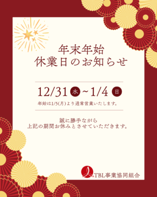 休業期間: 2025年12月31日(水)~ 2026年1月4日(日)